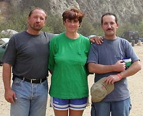 Увидев Игоря Кузьмина поутру, купающимся в прохладном горном ручье, я поняла, за что Рагимов называет его "Канадским лосем" и почему он чуть ли не единственный получил букет цветов на концерте от незнакомых поклонниц. Ну всем взял и красотой и статью, да плюс еще талантом бог не обидел. Он выпустил уже второй СД со своими песнями. Когда Грегор попросил его поделиться секретом, как он, работая по 12 часов в сутки геодезистом и плюс ко всему тратя на дорогу по 2-4 часа в день, успевает писать песни, Игорь сказал, что вот дорога то ему и помогает сидишь в машине с блокнотом на коленях и пишешь, и пишешь...